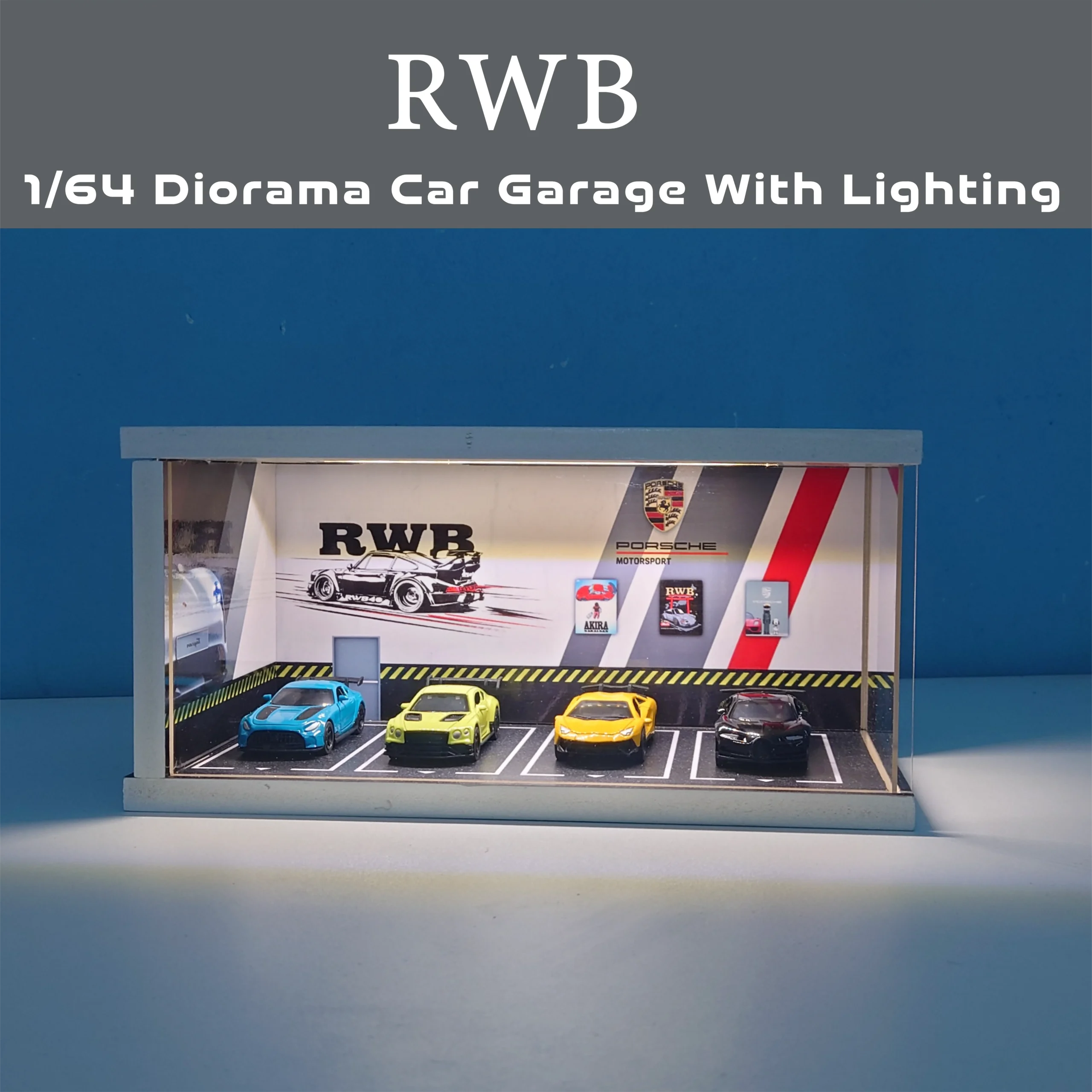 RBW Diorama Car Garage – Premium Display Setup for Diecast With Tri-Color Lighting