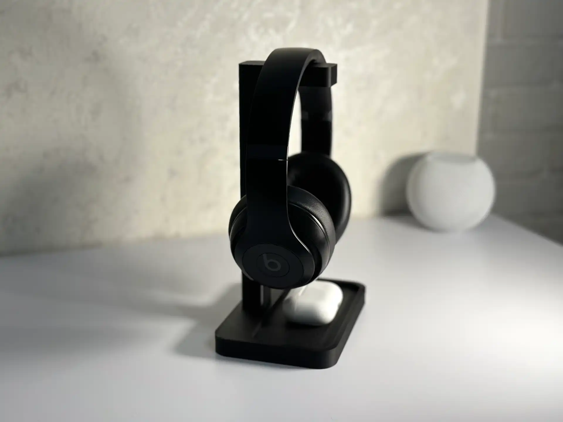 Keep your desk clean and organized with this premium 3D Printed Headphone Holder with Storage Tray. Designed to safely hold your headphones while providing extra space to store AirPods, charging cases, cables, watches, and other small accessories. Perfect for gaming setups, office desks, and home workstations.